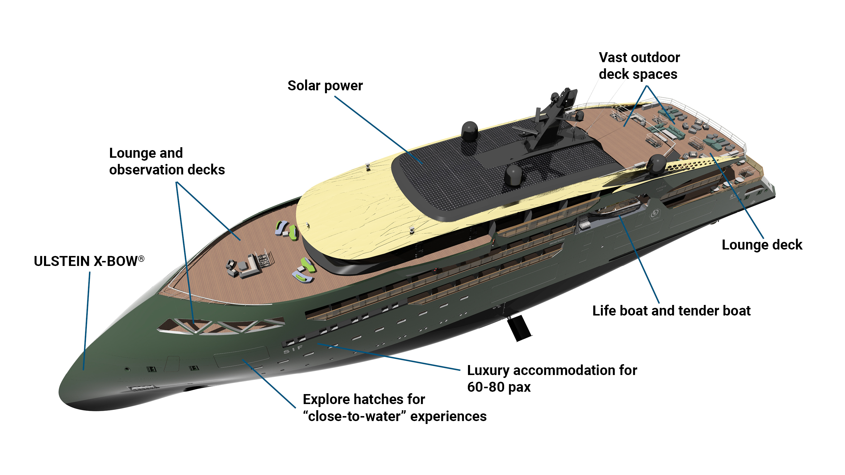 Our idea for ULSTEIN THOR was developed to solve a significant problem within the expedition cruise industry. Expedition cruise ships operate in increasingly remote and environmentally fragile areas. At the same time, the industry faces growing pressure from diverse stakeholders to preserve nature and minimise the environmental impact of cruising. THOR replenishes energy and supplies on site, while also boasting technology to facilitate rescue operations and conduct research. It is, in effect, a crucial piece of infrastructure to support sustainable and safer operations. Explore our case study to discover how 'THOR' is capable of revolutionising the expedition cruise industry.