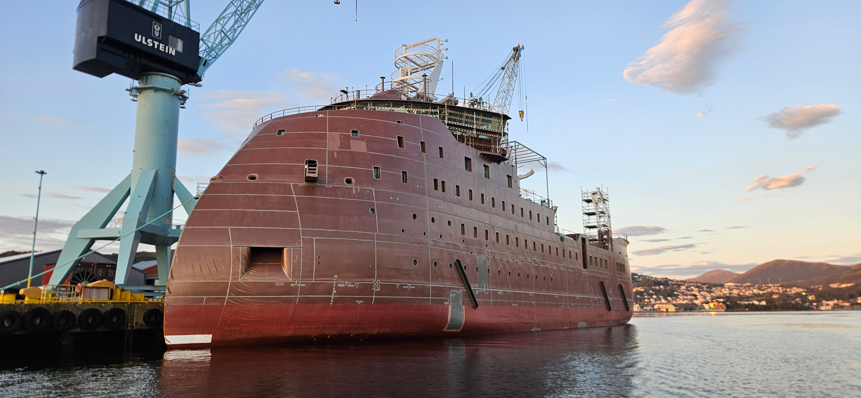 The hull has been positioned at the quayside since August, and most disciplines have been involved in the installation work, including piping, outfitting, and accommodation. Ulstein Elektro Installasjon is responsible for the electrical installations.